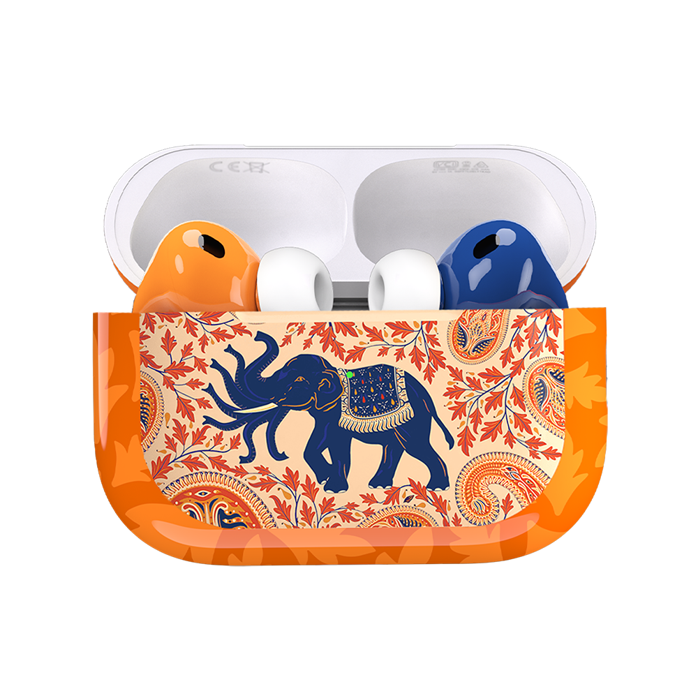Introducing the Hueg Designer Edition featuring Airavata, the mythological elephant symbolizing power and royalty. Hand-painted with inspiration from Kalamkari art, this AirPods design bridges Indian cultural heritage with modern aesthetics, capturing divinity, strength, and elegance through intricate craftsmanship.