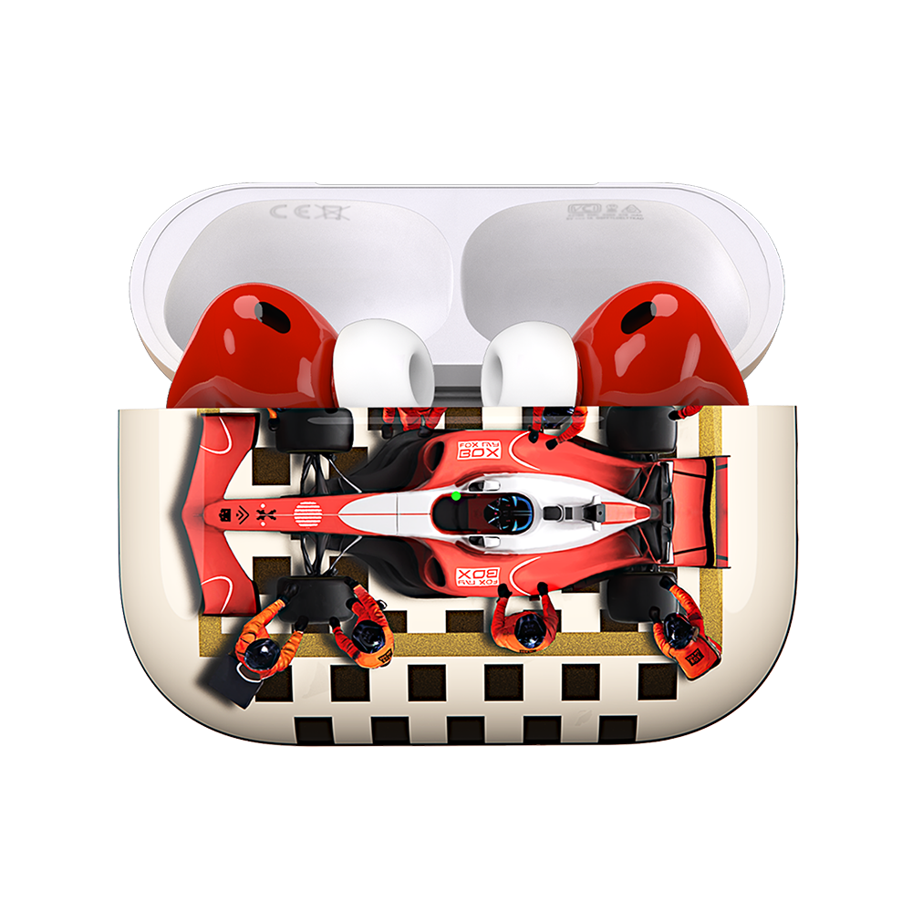Each pair of AirPods is finished with high-grade automotive paint, applied layer by layer to build depth and richness of color. From primers to basecoats to countless micro-steps, every stage matters in reaching that flawless glass-like finish.